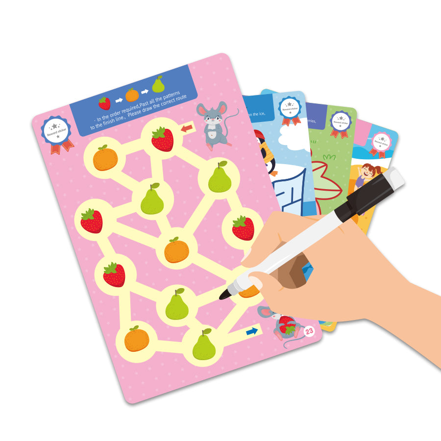 - Cách chơi: Bé sẽ làm theo yêu cầu của tấm thẻ và dùng viết long đi kèm để trả lời