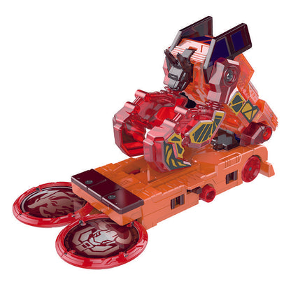 Chiến xa cổ đại BÒ HÚC CUỒNG HỎA.\n Ngủ vùi trong nền văn minh cổ đại suốt 200 triệu năm, Bò Húc Cuồng Hỏa chính là chiến binh mang trong mình sứ mệnh bảo vệ hành tinh khỏi sự đe dọa đáng sợ của chiến xa Đế Vương.\n Sau khi được Wilbur đánh thức, Bò Húc Cuồng Hỏa lại tiếp tục đồng hành cùng nhóm Thợ Săn Tinh Anh để hoàn thành sứ mệnh của mình.\n Thuộc dòng chiến xa song kích, Bò Húc Cuồng Hỏa khi biến hình sẽ ăn 2 xu và xoay 180 độ.\n Khi kết hợp 2 chiến xa với nhau có thể ăn được 3 xu.\n Điểm đặc biệt ở dòng song kích đó là khả năng kết hợp chiến xa không giới hạn, tạo nên một hợp thể sức mạnh bất bại.\n Hãy sở hữu ngay siêu phẩm đồ chơi cực hot bước ra từ bộ phim THỢ SĂN CHIẾN XA nhé!.\n CÙNG TRỞ THÀNH THỢ SĂN CHIẾN XA DŨNG CẢM VÀ LÊN ĐƯỜNG TRUY TÌM ĐỒNG XU ĐẾ VƯƠNG THÔI NÀO!.\n Sản phẩm đồ chơi xe biến hình Bò Húc Cuồng Hỏa gồm 1 xe biến hình, 1 đồng xu kích hoạt chế độ chiến xa, 1 đồng xu bí mật.\n