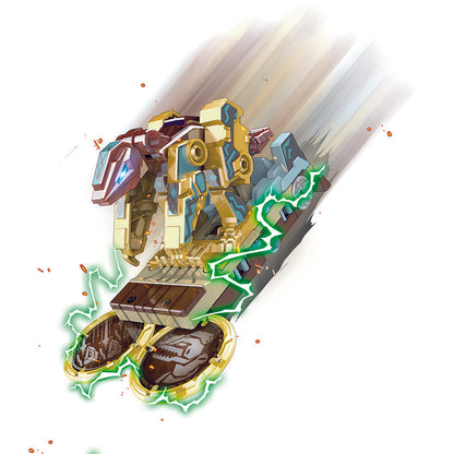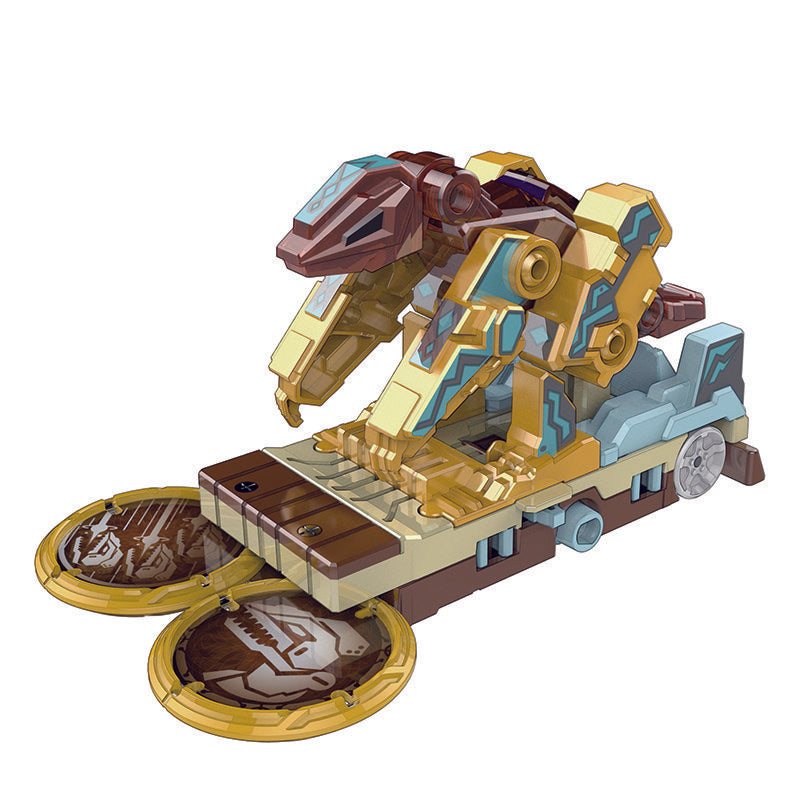 Chiến xa cổ đại KHỦNG LONG BÃO CÁT.\n Ngủ vùi trong nền văn minh cổ đại suốt 200 triệu năm, Khủng Long Bão Cát chính là chiến binh mang trong mình sứ mệnh bảo vệ hành tinh khỏi sự đe dọa đáng sợ của chiến xa Đế Vương.\n Sau khi được Ringo đánh thức, Khủng Long Bão Cát lại tiếp tục đồng hành cùng nhóm Thợ Săn Tinh Anh để hoàn thành sứ mệnh của mình.\n Thuộc dòng chiến xa song kích, Khủng Long Bão Cát khi biến hình sẽ ăn 2 xu và xoay 180 độ.\n Khi kết hợp 2 chiến xa với nhau có thể ăn được 3 xu.\n Điểm đặc biệt ở dòng song kích đó là khả năng kết hợp chiến xa không giới hạn, tạo nên một hợp thể sức mạnh bất bại.\n Hãy sở hữu ngay siêu phẩm đồ chơi cực hot bước ra từ bộ phim THỢ SĂN CHIẾN XA nhé!.\n CÙNG TRỞ THÀNH THỢ SĂN CHIẾN XA DŨNG CẢM VÀ LÊN ĐƯỜNG TRUY TÌM ĐỒNG XU ĐẾ VƯƠNG THÔI NÀO!.\n Sản phẩm đồ chơi xe biến hình Khủng Long Bão Cát gồm 1 xe biến hình, 1 đồng xu kích hoạt chế độ chiến xa, 1 đồng xu bí mật.\n