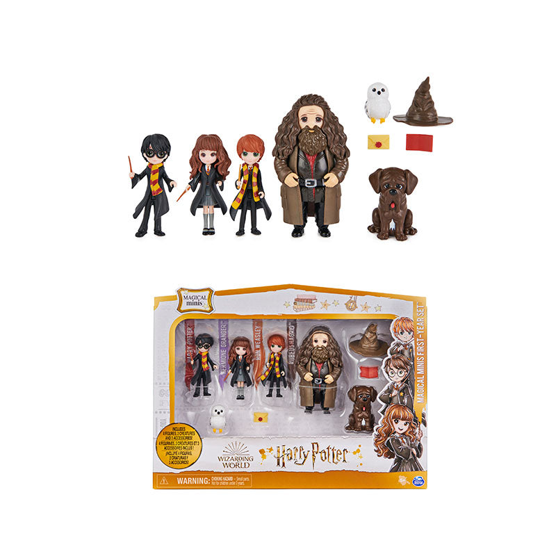Tái hiện lại năm thứ nhất tại Hogwarts với các nhân vật Harry Potter yêu thích của bạn. Nó bao gồm nhân vật Harry Potter, Hermione Granger, Ron Weasley và Rubeus Hagrid dài 7,5cm, cộng với 3 phụ kiện, Hedwig và Fang!