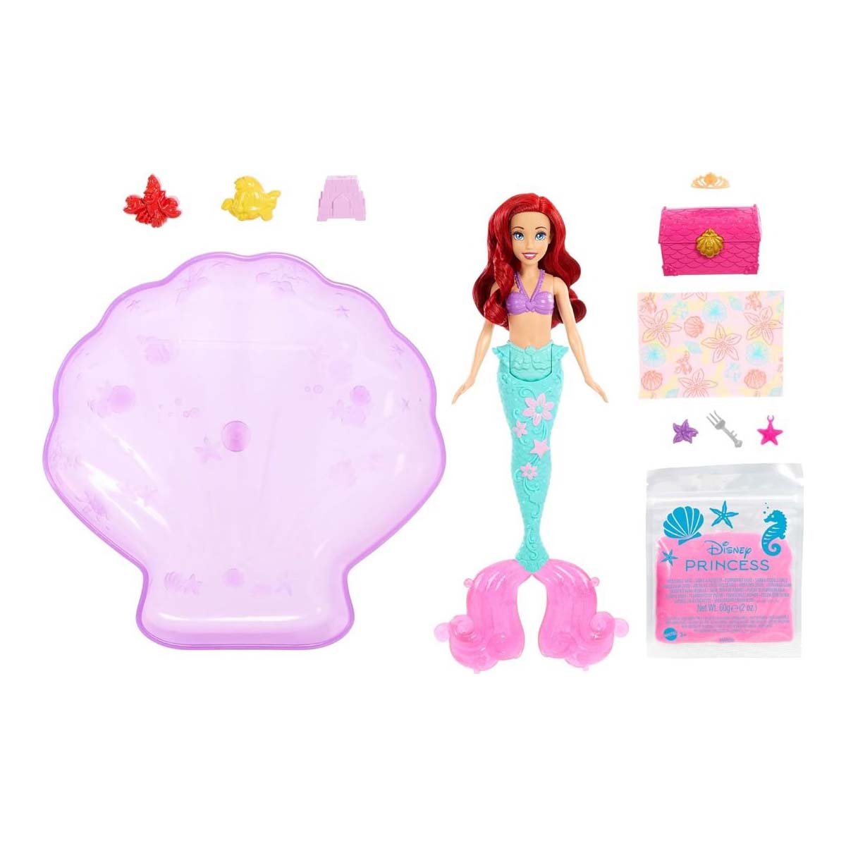 - Búp bê Ariel trong bộ sản phẩm có chiếc vây lấp lánh và khả năng uốn cong phần eo để tạo dáng đẹp khi nằm trong hồ bơi. Cát nặn màu hồng mang đến trải nghiệm thú vị khi chơi xây lâu đài cát. Ngoài ra, bộ còn đi kèm các phụ kiện như kẹp tóc, giúp bé chăm chút cho mái tóc dài của Ariel, cũng như rương kho báu để lưu giữ những vật nhỏ xinh.