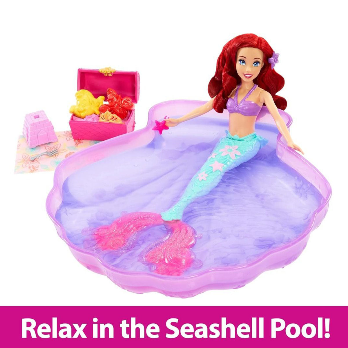 - Hãy tận hưởng một ngày bơi lý tưởng cùng Disney Princess - Hồ bơi của nàng tiên cá Ariel! Lấy cảm hứng từ bộ phim ""Nàng tiên cá"" của Disney, búp bê Ariel thời trang đi kèm với hồ bơi hình vỏ sò lớn, mang lại niềm vui bất tận dưới nước.