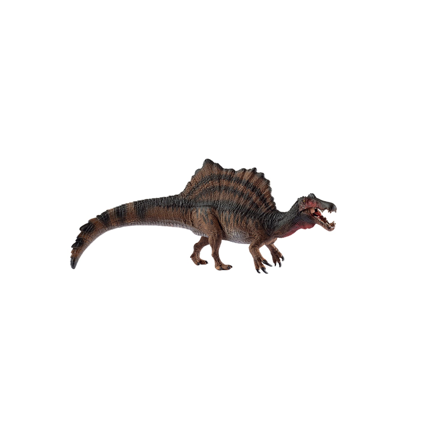 Loài khủng long Spinosaurus có đầu giống với đầu cá sấu và là loài ăn thịt sống hoặc xác thối. Loài khủng long ăn thịt này cực kỳ nguy hiểm với chiều dài lên đến 17m và có cân nặng vài tấn. Khủng long spinosaurus có 2 chi trước khoẻ với bộ vuốt sắc bén để xé thịt con mồi, hơn hết là chúng bộ hàm như cá sấu với những chiếc răng sắc nhọn. Thứ ăn chủ yếu của loài khủng long Spinosaurus là các loài khủng long nhỏ hơn khác và các loài cá to lớn. Chiếc vây cực lớn trên lưng chúng có rất nhiều công dụng, chúng giúp khủng long có thể hấp thu nhiệt từ mặt trời để sưởi ấm cơ thể và công dụng đặc biệt nhất của chiếc vây là để thu hút sự chú ý của các con khủng long khác phái.
