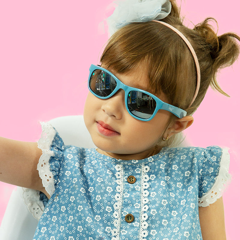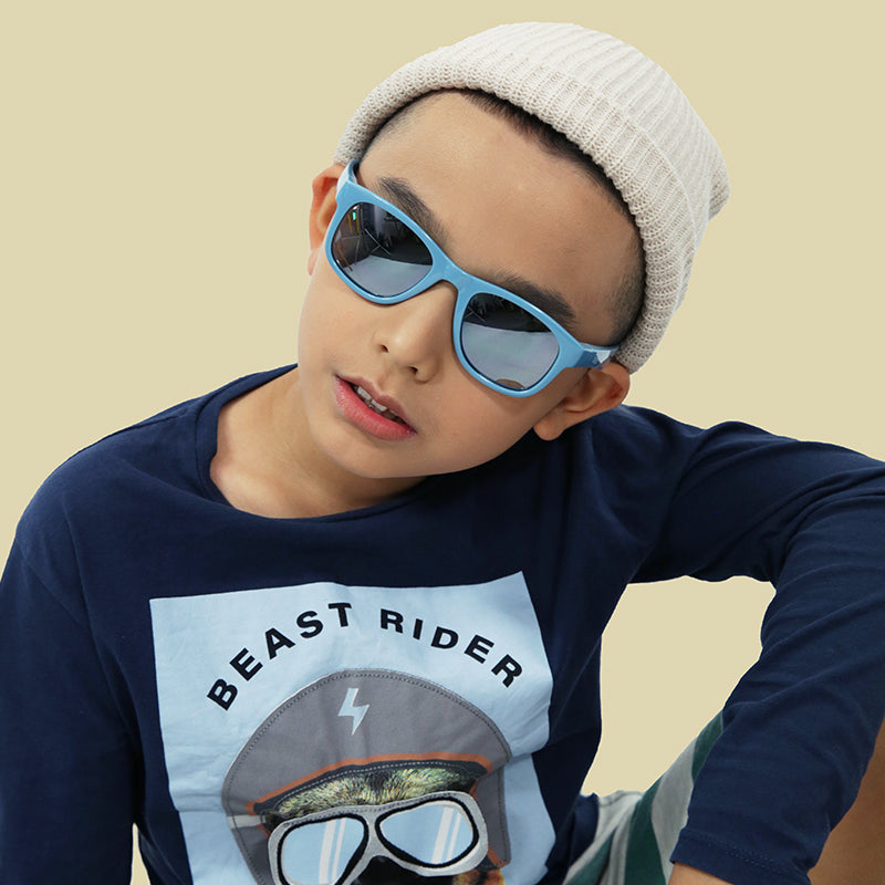 - Phần mắt kính tráng gương tạo nên sự mới mẻ, hỗ trợ chống va đập, chống trầy, chống tia UVA và UVB hiệu quả 100% giúp bảo vệ mắt của trẻ đến mức tối đa.