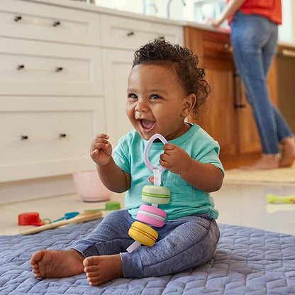 Đồ chơi "Ngọt ngào"cho bé gồm 3 chiếc bánh quy Macaron kiểu Pháp khi lắc sẽ phát ra âm thanh leng keng và lách cách vui nhộn với dây ruy băng mềm thuận tiện để bé cầm trên tay "