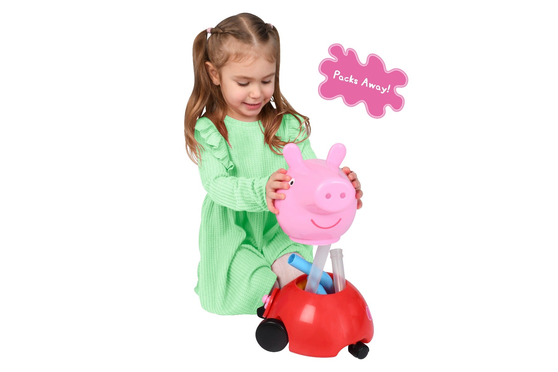 Máy hút bụi của Peppa Pig có hình dáng giống như nhân vật Peppa trong phim. Máy Hút Bụi Của Peppa Pig bao gồm hai đầu hút có thể luân phiên thay đổi hút ở bề mặt khác nhau, có sức hút thực sự, qua đó cho bé trải nghiệm các công việc nhà thường. Đây chắc chắn sẽ là một món quà sinh nhật hoặc cho những kỳ lễ đặc biệt mà trẻ sẽ yêu thích.