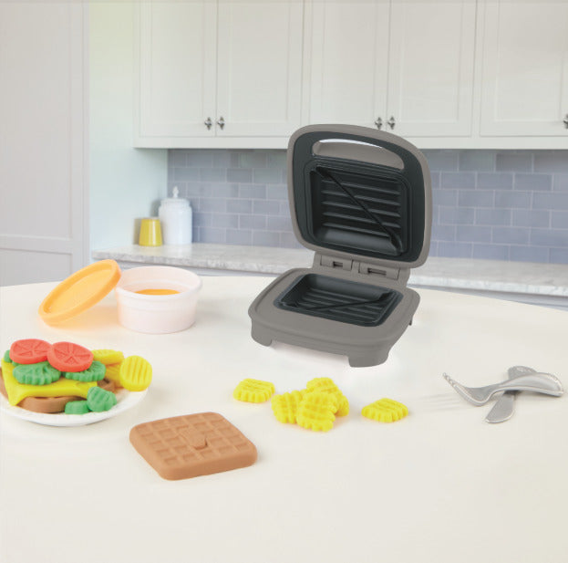 "Bé ơi! Cùng nhau tạo ra những miếng sanwich bơ thật ngon lành để có 1 bữa sáng tuyệt vời, kèm theo nhiều topping nữa. Bất kì chiếc bánh sanwich nào mà bạn thích sẽ được thực hiện dễ dàng với máy làm bánh giúp tạo ra những chiếc bánh thơm ngon nhất! Thêm 1 ít rau củ để không bị ngán. Và dặc biệt nhất, kèm theo 1 hộp Playdoh đàn hồi có thể kéo dãn được khi cho vào lớp nhân của bánhBộ sản phẩm gồm: 6 hũ hột đủ màu, 1 hũ bột Playdoh đàn hồi, 1 máy làm bánh sanwich, đĩa muỗng và cuốn hướng dẫn đi kèm."