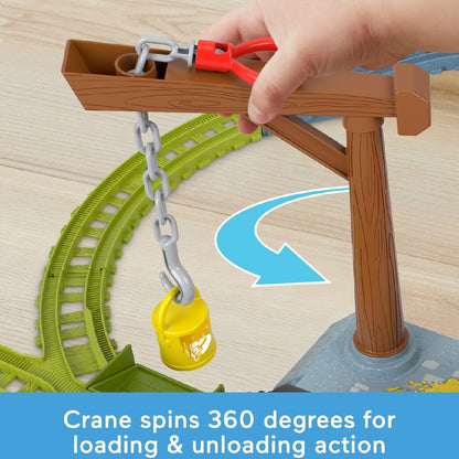 - Để tăng thêm phần thú vị, trẻ có thể điều khiển Thomas với các tình huống khác nhau: sử dụng cần cẩu xoay 360 độ để chất và dỡ hàng, hoặc sắp xếp lại đường ray để tạo ra những cuộc phiêu lưu mới.