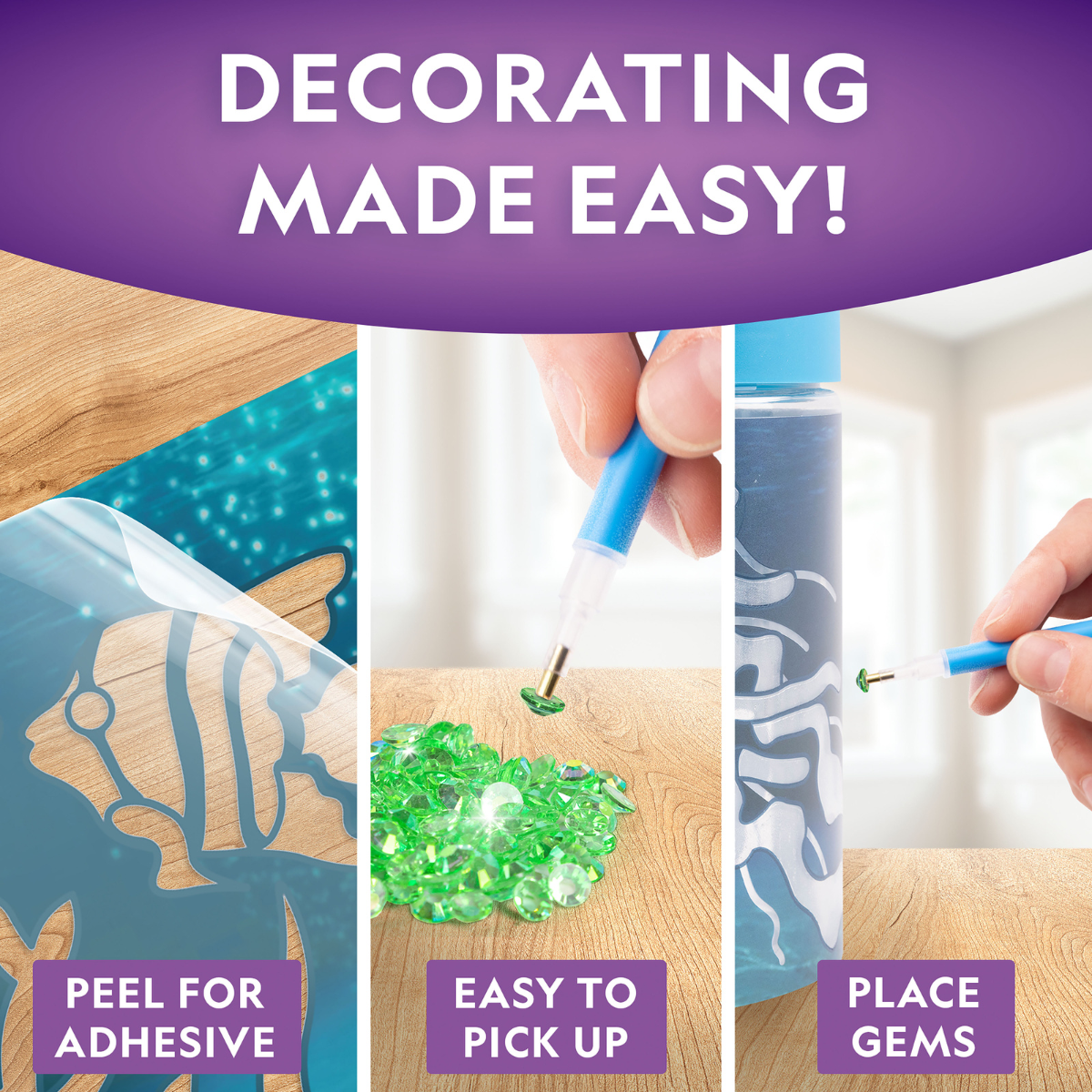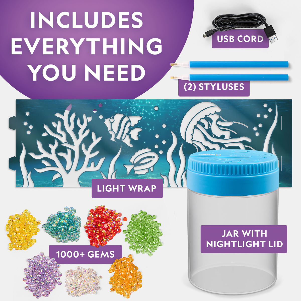 -Bé sẽ tha hồ sáng tạo khi trang trí lớp vỏ đèn bằng hơn 1.000 viên đá lấp lánh đủ 7 màu! Không cần keo dán – bé chỉ cần dùng bút chấm đính (stylus) đi kèm là có thể dễ dàng gắn đá theo ý thích. Bộ kit còn có 2 cây stylus, rất lý tưởng để bé cùng bạn bè hoặc bố mẹ trang trí chung.
