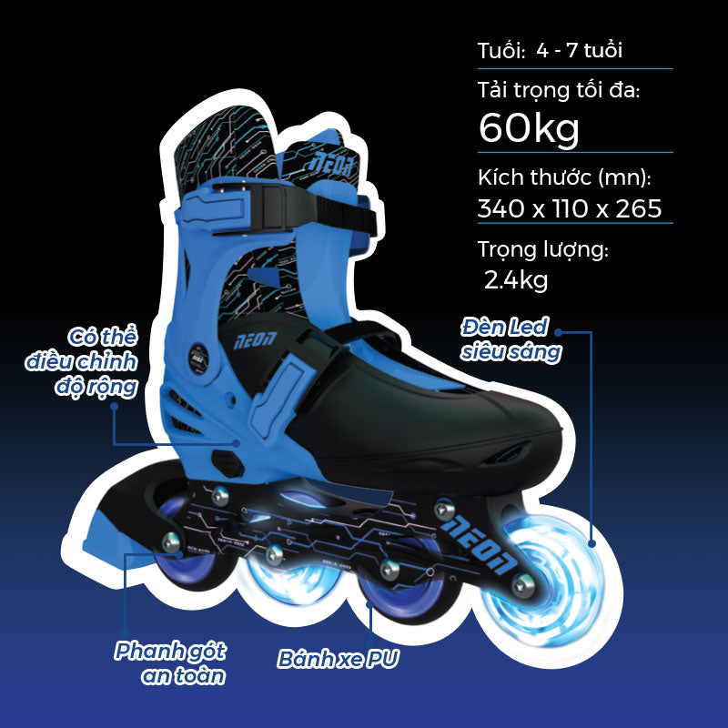 Patin Neon Inline màu xanh dương - NT07B4 dành cho bé từ 4-7 tuổi là một trong những dòng sản phẩm bán chạy nhất: