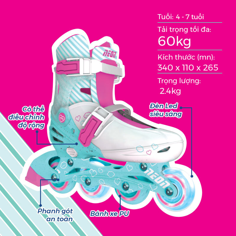 Patin Neon Inline màu xanh ngọc - NT07T4 dành cho bé từ 4-7 tuổi là một trong những dòng sản phẩm bán chạy nhất: