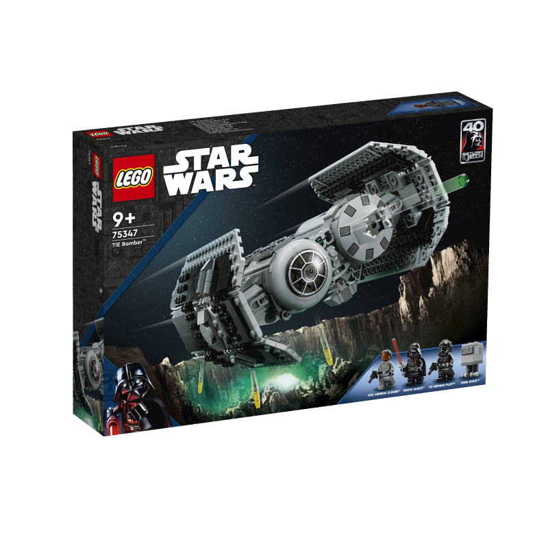 Những người hâm mộ Star Wars: The Empire Strikes Back có thể thực hiện các nhiệm vụ của Đế quốc để đánh bại Liên minh phiến quân bằng đồ chơi chiến đấu sao TIE Bomber (75347) được chế tạo bằng gạch LEGO® này. Nó có buồng lái minifigure mở, chức năng thả ngư lôi và 2 game bắn súng stud. Một ý tưởng quà tặng hàng đầu cho những người hâm mộ Chiến tranh giữa™ các vì sao từ 9 tuổi trở lên, bộ đồ chơi đồ chơi hành động, có thể xây dựng này cũng bao gồm Darth Vader, Phó Đô đốc Sloane và TIE Bomber Pilot LEGO minifigures với vũ khí, cộng với hình Gonk Droid LEGO và một xe đẩy để vận chuyển ngư lôi đến Máy bay ném bom TIE.
