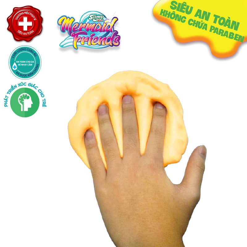 Chơi Slimy thật an toàn, công thức từ Thụy Sĩ. Đạt tiêu chuẩn an toàn quốc tế. Chứng nhận chất lượng châu Âu. Thành phần hoàn toàn tự nhiên, an toàn cho da bé nhạy cảm. Không chứa parabens, lượng boron thấp. Không để lại vết bẩn trên quần áo, dễ dàng tẩy rửa.