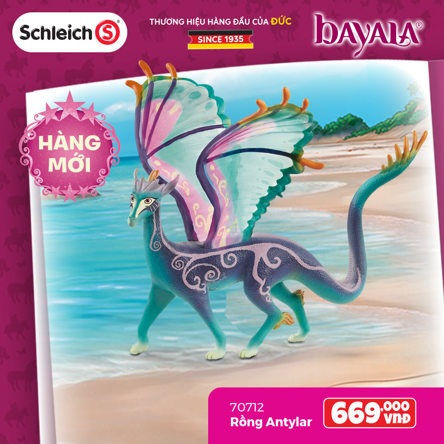 Schleich là một thương hiệu đồ chơi đến từ Đức với 80 năm kinh nghiệm trong việc sản xuất các đồ chơi mô hình, nhân vật. Sản phẩm của Schleich được trẻ em, phụ huynh và giáo viên trên 70 quốc gia trên toàn thế giới tin tưởng và sử dụng. Sản phẩm được chứng nhận 2009/48/EC và ED 71 về mức độ an toàn của đồ chơi và tiêu chuẩn đồ chơi quốc tế ASTM F963-2008 nên hoàn toàn không chứa các chất độc hại gây hại cho trẻ. Mỗi sản phẩm của Schleich đều được sơn bằng tay rất tỉ mỉ. Qua nhiều bước phức tạp khác nhau và rất công phu mới có thể sản xuất được một sản phẩm hoàn thiện. Rồng Antylar với đôi cánh xinh đẹp đầy màu sắc đã chờ đợi rất lâu để ôm ấp đứa con của mình. Giờ đây, Antylar có thể cho con mình những giờ vui chơi thả diều và cuối cùng họ cũng có thể cùng nhau trải nghiệm những cuộc phiêu lưu thú vị.