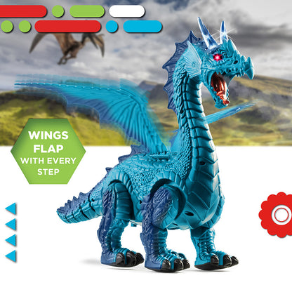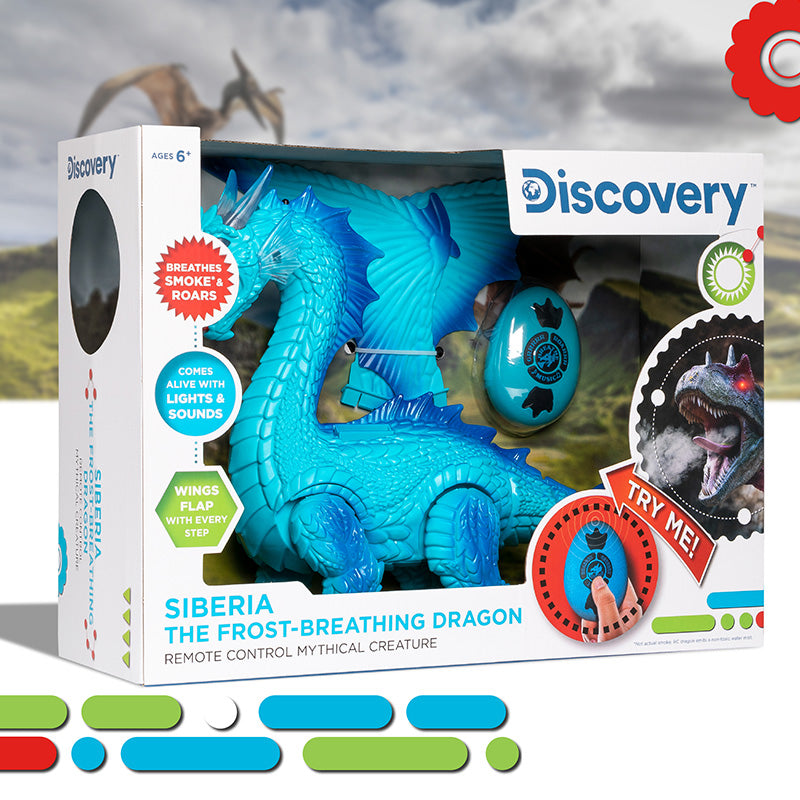 Rồng phun khói - 1303004301 của thương hiệu DISCOVERY #MINDBLOWN với khả năng phun khói độc đáo. Chú rồng sở hữu 2 tiếng gầm thể hiện hai trạng thái tấn công và phòng thủ tách biệt. Với mỗi bước đi đầy uy nghiêm, chú rồng sẽ vỗ đôi cánh mạnh mẽ, và đôi mắt sẽ sáng lên như tia chớp. Bé sẽ được điều khiển chú rồng dũng mãnh này di chuyển tiến, lùi, và trái, phải. Với từng khớp chuyển động như thật, bé sẽ cảm nhận được sự mạnh mẽ trong từng động tác của chú rông phun khói này.