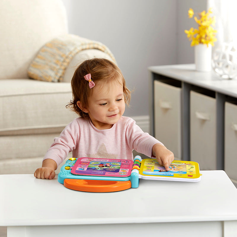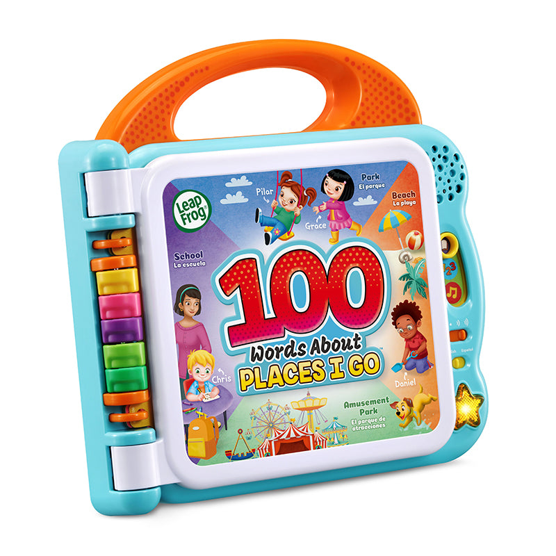 Từ, Màu sắc và Đếm, và Âm thanh vui nhộn Nút nhạc ngôi sao sáng phát hai bài hát học song ngữ; Sử dụng tay cầm để mang sách khi di chuyển