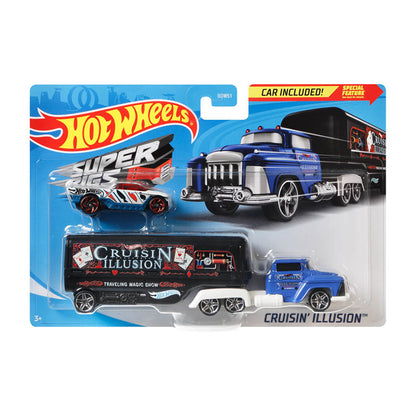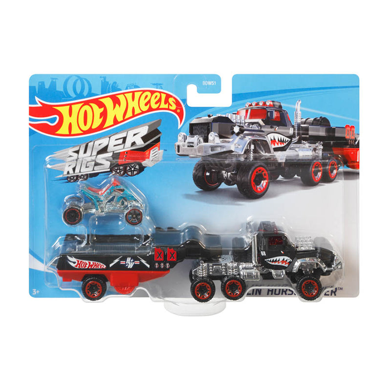 Những siêu xe tải Hot Wheels kết hợp với Siêu xe hơi Hot Wheels mang đến những cách chơi đầy cảm hứng mới, vận chuyển hoặc chạy trên đường đua để trải nghiệm cảm giác mạnh! Mỗi sản phẩm đi kèm với một chiếc xe thể thao và có các chi tiết thú vị và năng động.