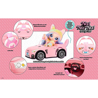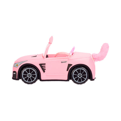 • Chiếc xe bằng vải mềm mại màu hồng với các chi tiết mô phỏng bạn kitty dễ thương với mũi và râu, kính chắn gió được gắn thêm đôi tai mèo cực yêu , chiếc đuôi mềm mại, lông tơ được gắn tinh tế ở đuôi xe