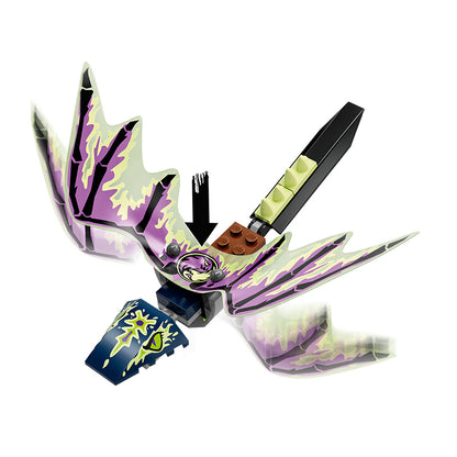• Bộ đóng kịch cũng có đồ chơi rồng với đôi cánh sẽ vỗ khi trẻ em đè lên lưng nó. Ngoài ra còn có một chiếc yên cho các nhân vật ninja mini cưỡi trên đó.