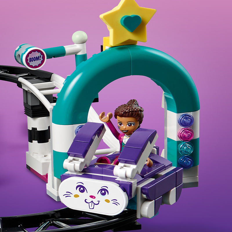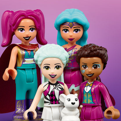 • Có rất nhiều phụ kiện để khơi dậy những câu chuyện, chẳng hạn như câu lạc bộ tung hứng, trang điểm sân khấu và bóng bay. Những viên gạch phát sáng trong bóng tối trở nên sống động khi tắt đèn! • Tương thích với các bộ LEGO® Friends Magical Funfair khác - Magical Acrobatics (41686), Magical Funfair Stalls (41687), Magical Caravan (41688) và Magical Ferris Wheel and Slide (41689) để vui hơn.