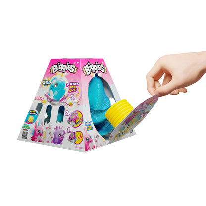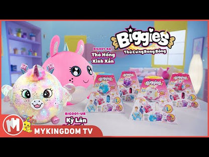 Thú Cưng Bong Bóng Biggies có kích thước siêu to nhờ vào đường kính 45cm khi được bơm căng. Cùng đặc tính chứa khí, Biggies tuy to mà nhẹ, mặc bé thỏa thích tung hứng. Khi không chơi nữa, bé có thể tiến hành xì hơi cho bong bóng Biggies rồi xếp lại gọn gàng chờ lần sau bơm hơi chơi tiếp. Mỗi bé thú cưng đến từ Biggies đều có một chiếc sừng kỳ lân đặc thù và đôi cánh siêu đáng yêu.