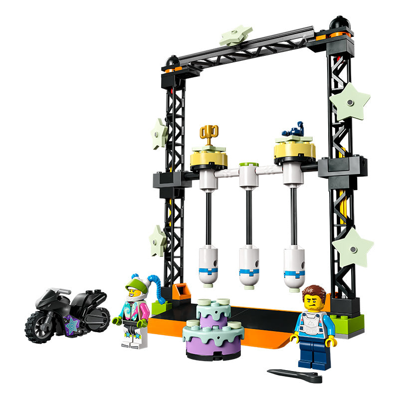 Giảm ánh đèn và hồi hộp cùng thử thách với LEGO® City Stuntz đang lung linh trong bóng tối! Tham gia loạt phim truyền hình LEGO City Adventures với các ngôi sao Galactic Poppy Star và Harl Hubbs để có mặt trong các cuộc thi bay nhào lộn thú vị với bộ mô hình hấp dẫn này. Xác định vị trí của bạn tại Thử thách Vượt Búa Tạ Xoay Vòng, tăng sức mạnh cho chiếc xe máy nhào lộn chạy bằng bánh đà, khởi động để lao vào cột và giành giải thưởng! Nhưng ai sẽ thắng trong ngày này? Bạn có thể tìm hiểu xem!