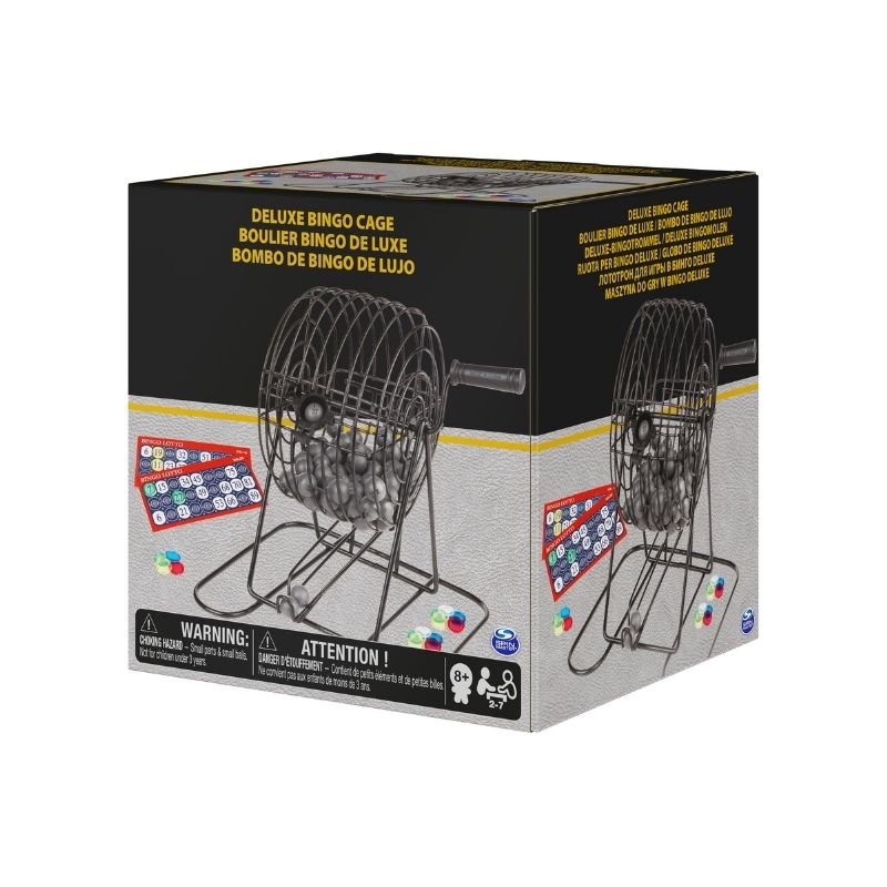 Thương hiệu Canada. 90 bóng loto đánh số. 1 lồng sắt có tay cầm có thể quay được. 24 tờ số loto 2 mặt. 150 thẻ nhựa để đặt số