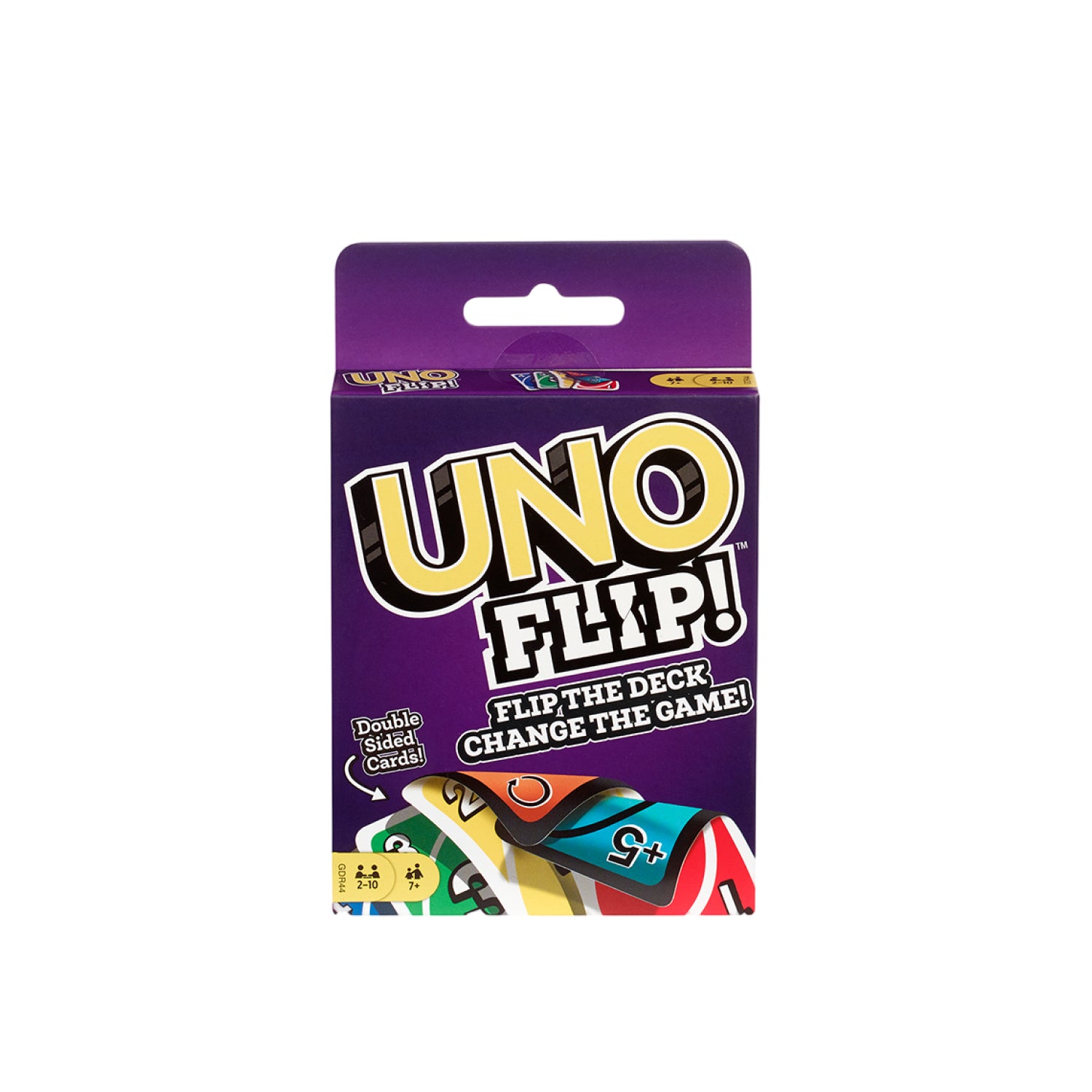 Hãy chuẩn bị tinh thần cho phiên bản hai mặt của UNO ™ cổ điển: UNO FLIP! ™. Cũng tương tự với bộ UNO cổ điển, cộng với những điểm mới thú vị mới trên phiên bản FLIP - giống như bộ bài có hai mặt, thẻ FLIP đặc biệt và các hình phạt khó hơn - điều đó mang lại lợi thế cạnh tranh cho các game thủ. Có một "Mặt sáng" trong bộ bài, chơi giống như UNO ™ cổ điển và "Mặt tối" nơi các hình phạt siêu khó. Người nắm giữ thẻ FLIP xác định bạn chơi ở Mặt sáng hay Mặt tối của bộ bài. Mặt tối của bộ bài bao gồm các thẻ hành động mới thực sự làm rung chuyển mọi thứ, chẳng hạn như thẻ Draw Five và thẻ Skip mọi người. Lập chiến lược để đánh bại sự cạnh tranh và là người đầu tiên loại bỏ quân bài của bạn để giành chiến thắng. Khi bạn xuống thẻ cuối cùng, đừng quên hét lên "UNO!" Trò chơi UNO phù hợp cho cả gia đình và cho trẻ từ 7 tuổi trở lên.