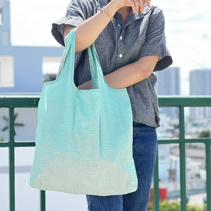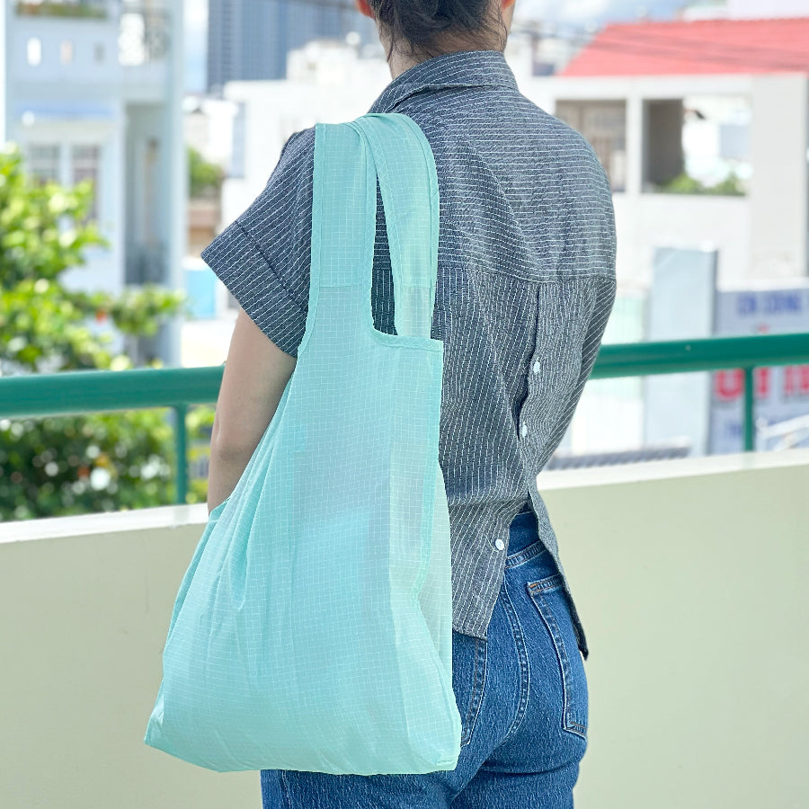 Mẫu túi gấp màu xanh mint pastel mát mắt, được làm từ chất liệu polyester trượt nước cùng kích thước siêu rộng. Sản phẩm có thể sử dụng được cho nhiều dịp & mục đích khác nhau như: