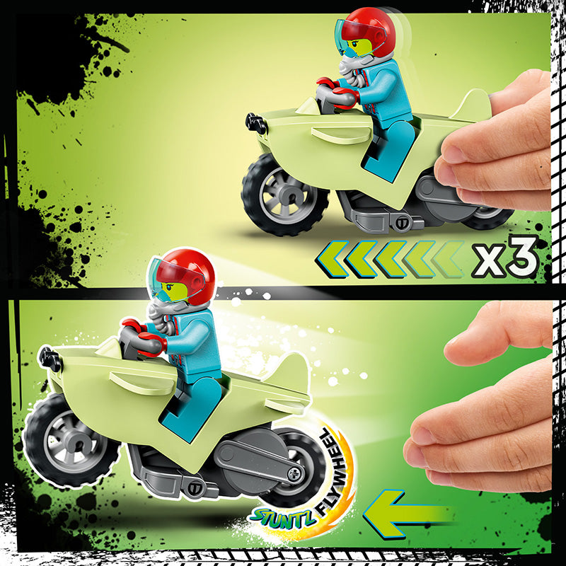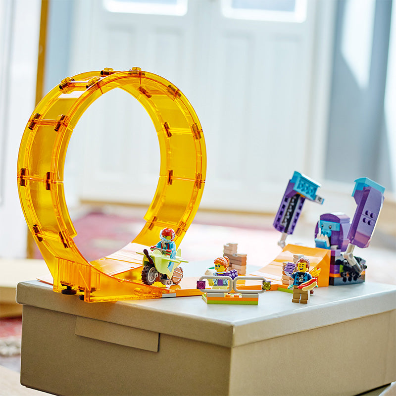 Kích hoạt xe đua bánh đà và tham gia LEGO® City Vòng đua Máy Đập King Kong. Tham gia cùng tay lái LEGO City Stuntz bay cao trên chiếc mô tô có cánh, cực ngầu. Chạm đến vòng đua ở tốc độ cao nhất để bất chấp trọng lực và phóng lên từ đoạn đường nối! Bạn có thể bay qua cỗ máy King Kong, hay nó sẽ phá vỡ các bức tường bằng cánh tay mạnh mẽ? Chuẩn bị cho hành động bay nhào lộn “ngoạn mục” ngoài đời thực!