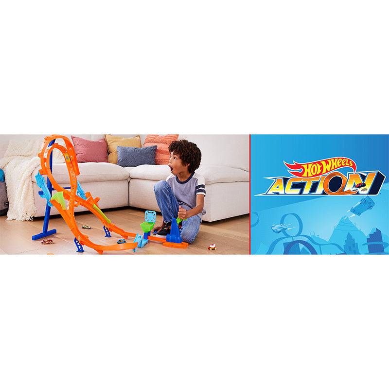 Bộ sản phẩm có 2 cách lắp ráp, mỗi đường có các tính năng độc đáo riêng để đua trong bộ đường đua Hot Wheels® Action Vertical-8 Jump.