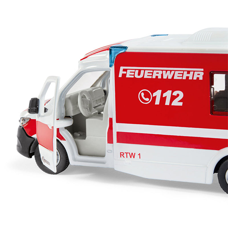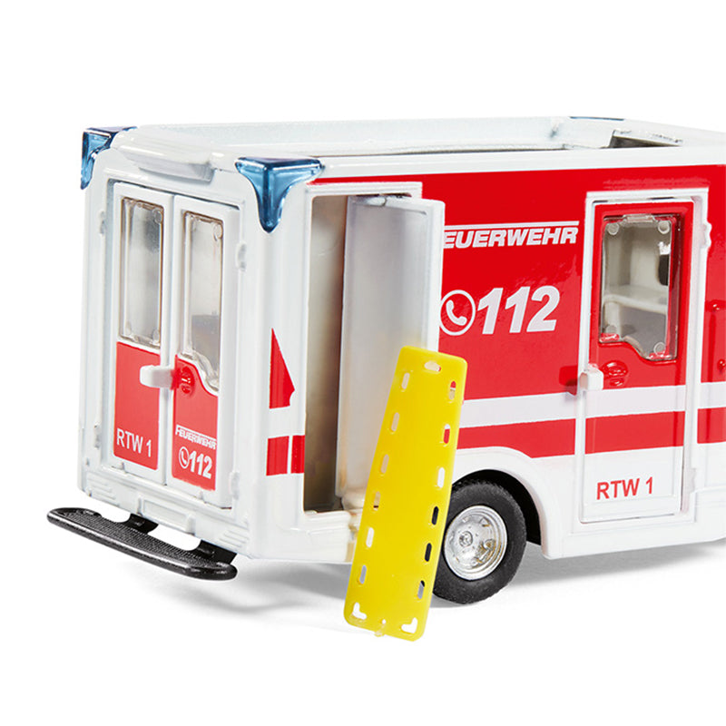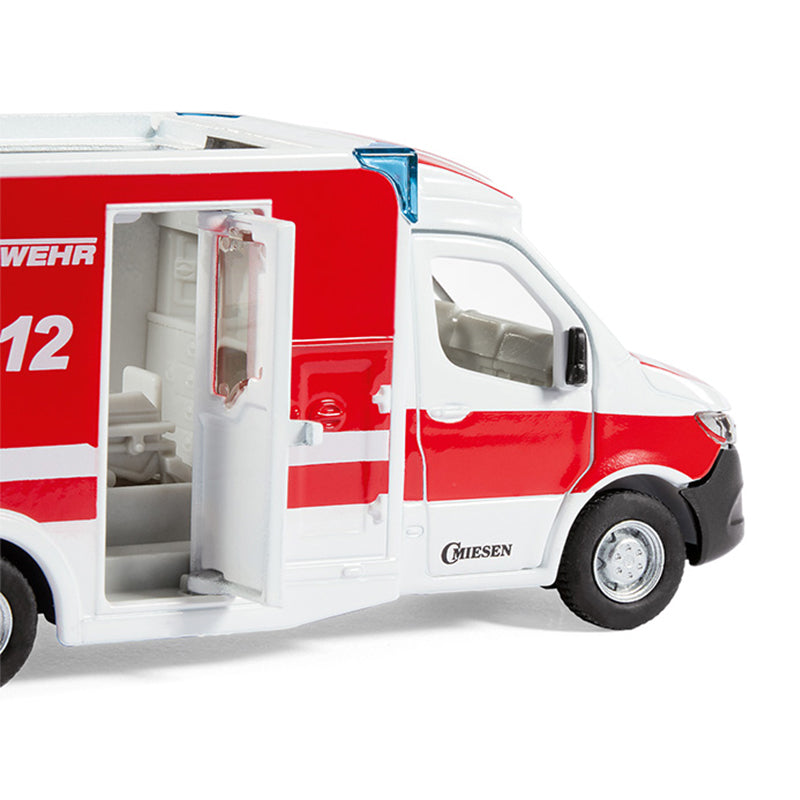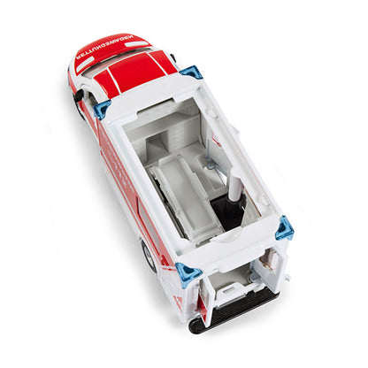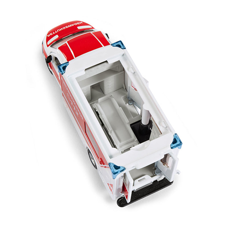 Dòng xe mô phỏng từ xe cứu thương của Đức, với sự kết hợp nhẹ nhàng của màu đỏ và trắng kèm theo khả năng mở cửa linh hoạt ở hai bên. Không những thế cánh cửa phía trên hoàn toàn có thể mở được để bé có thể khám phá nội thất bên trong chiếc xe cấp cứu có gì. Chưa hết, xe còn có cả băng ca cứu thương vô cùng ấn, tái hiện lại mọi chức năng của 1 chiếc xe cứu thương thực thụ. Chắc hẳn đây sẽ là một dòng xe mô hình phù hợp cho những bé yêu thích công việc cứu người, giúp bé nuôi dưỡng ước mơ của mình ngay khi còn nhỏ.