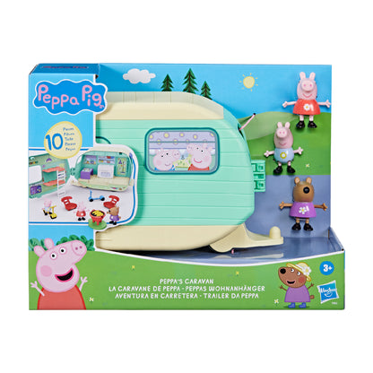 Hãy chuẩn bị cho chuyến cắm trại thú vị với bộ đồ chơi Heo Peppa's Caravan nào! Bộ đồ chơi Heo Peppa cắm trại này có thể đóng lại và được kéo theo bằng chiếc xe ô tô đỏ của gia đình Peppa (bán riêng, tùy thuộc vào tình trạng còn hàng). Khi mở ra, trẻ em có thể tưởng tượng ra nhiều hoạt động thú vị như nấu ăn trong bếp, ngủ trên giường tầng, và nhiều hơn thế nữa. Bộ sản phẩm bao gồm sáu phụ kiện để trẻ em có thể dựng trại cùng với ba nhân vật đáng yêu từ Heo Peppa, như: Heo George, Gấu Birgit, và tất nhiên cả Heo Peppa nữa! Bộ đồ chơi Heo Peppa's Caravan là lựa chọn hoàn hảo cho những món quà ý nghĩa dành cho các bé từ 3 tuổi trở lên.