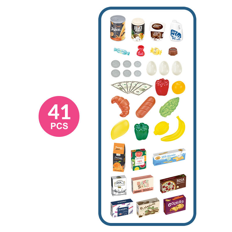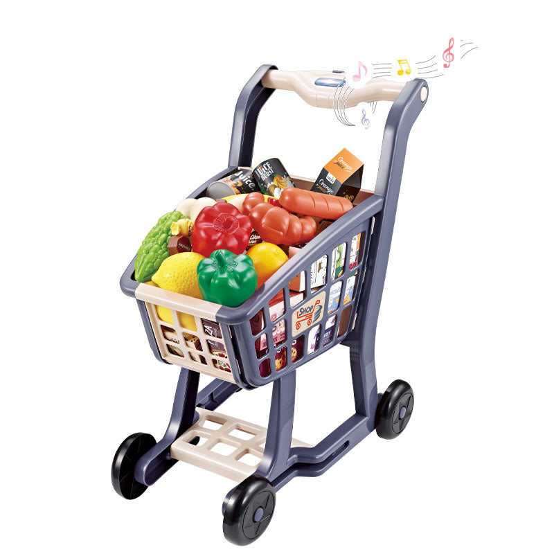 Bộ xe đẩy siêu thị có đèn và âm nhạc vui nhộn, bao gồm 41 chi tiết cho bé thỏa sức mua sắm và đóng vai bà nội trợ chuyên nghiệp. Có 2 màu xám và đỏ cho bé lựa chọn