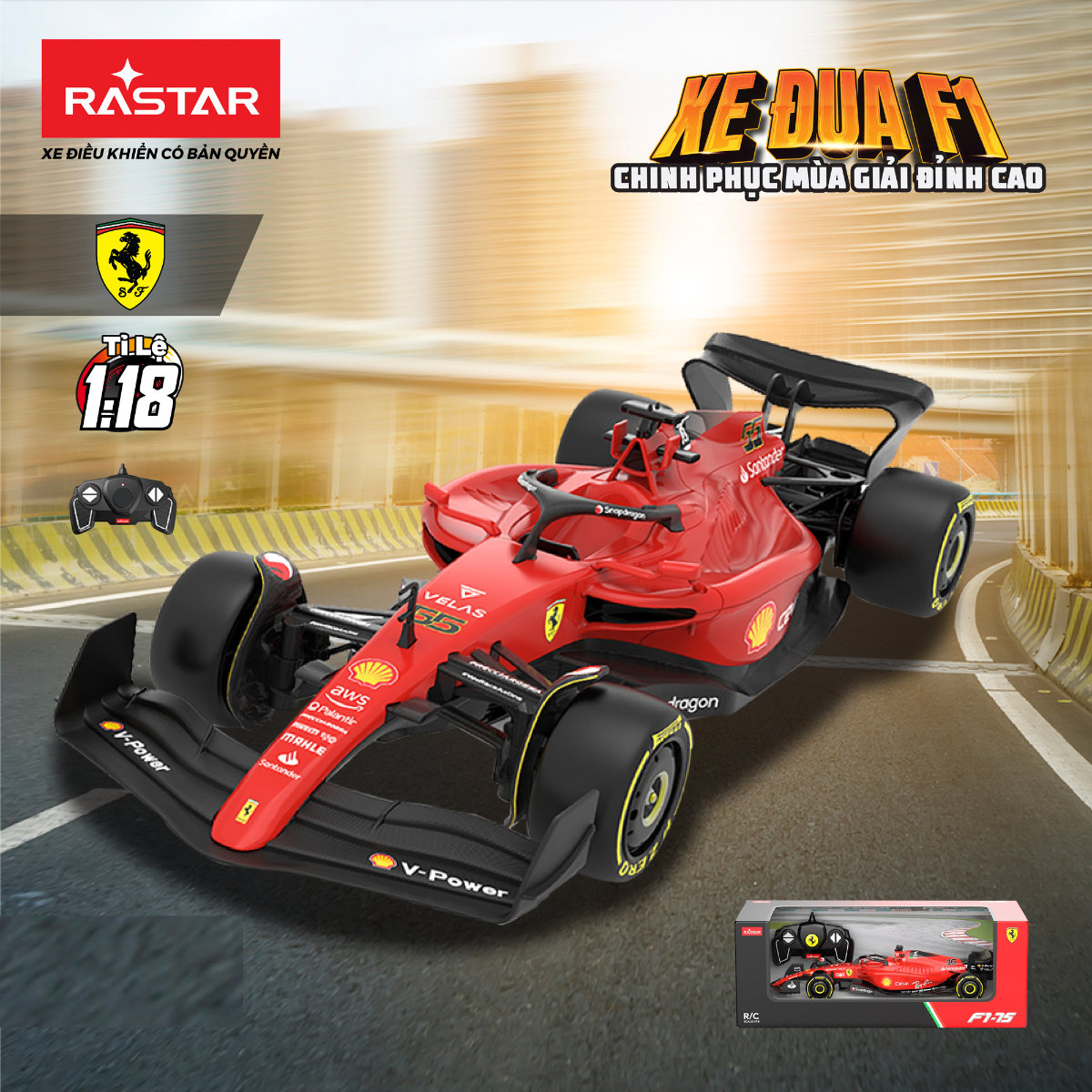 Đồ Chơi Xe Điều Khiển 1:18 Ferrari F1-75 Đỏ RASTAR R93400/RED